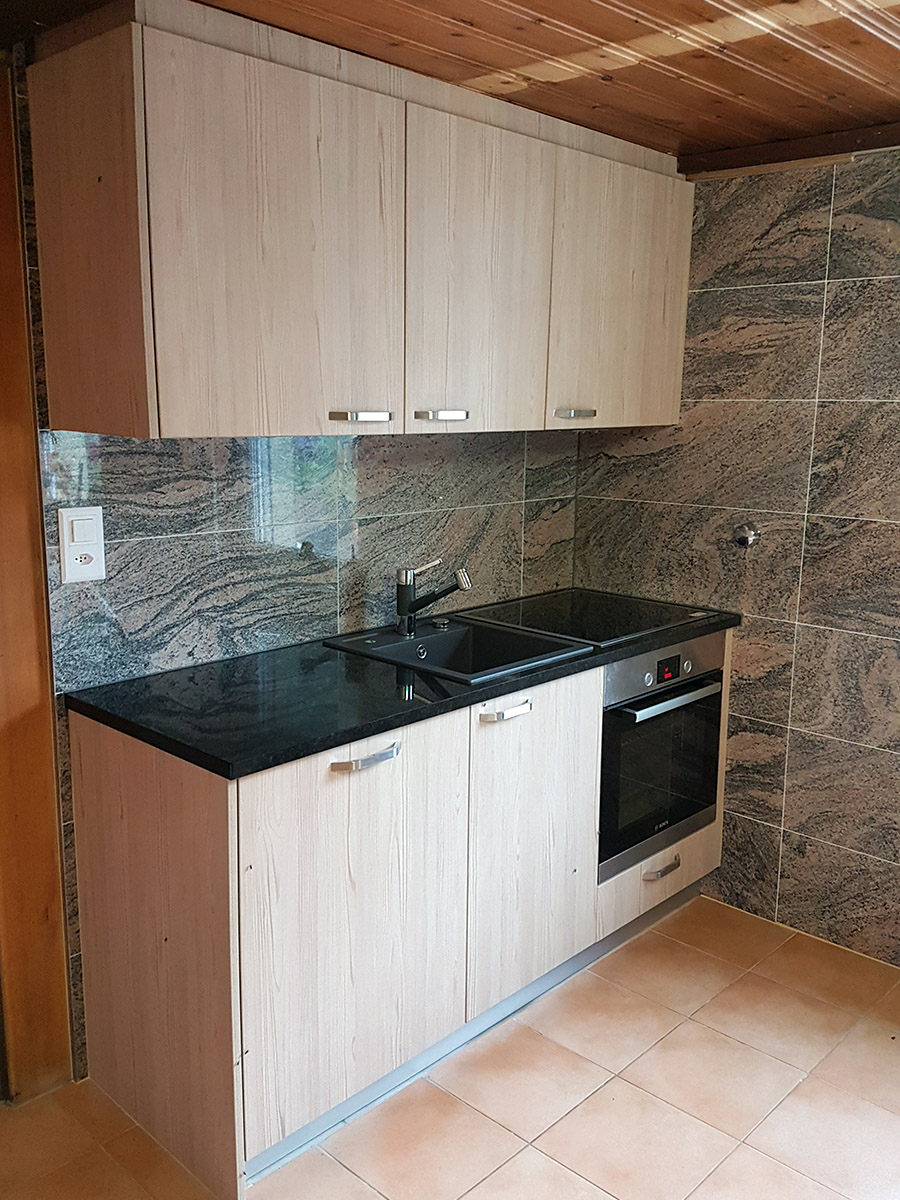 "Im März/April 2019 hat Herr Vasovic in der 2-Zimmerwohnung folgende Arbeiten ausgeführt: Alter Novilonboden sowie Kunststofftapete an den Wänden entfernt und Steinplatten an den Wänden angebracht und Bodenplatten verlegt und die Decke mit Farbe neu gestrichen. Im Schlafzimmer wurde ein neuer Boden verlegt.